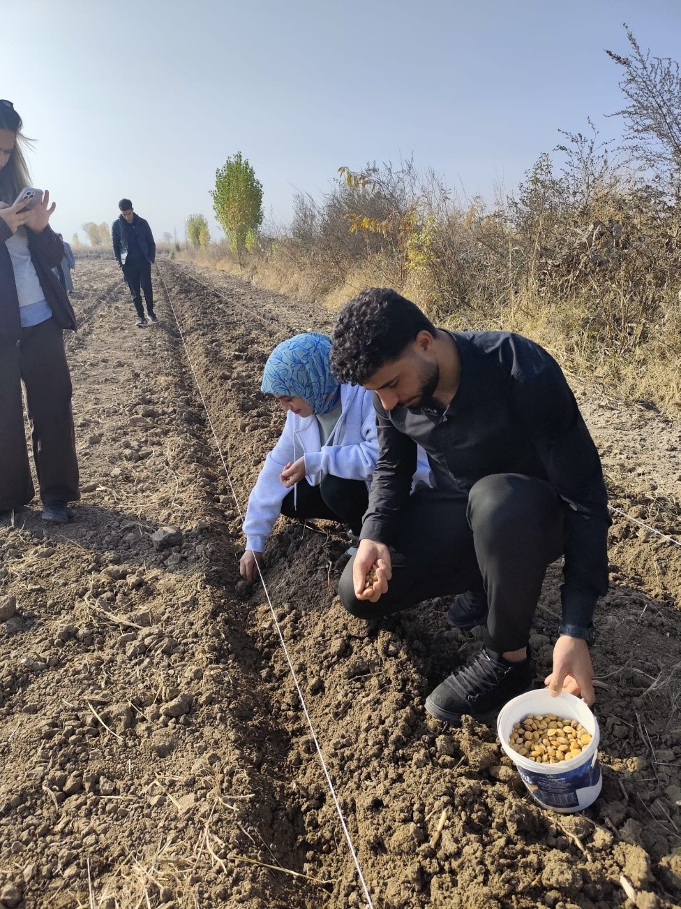 Gerçekleştirilen uygulama eğitiminde öğrencilere kayısı tohum ekimi yaptırılarak, tohum ekiminde dikkat edilmesi gereken temel aşamalar uygulamalı olarak anlatıldı. Eğitim sürecinde, geçen yıl ekimi yapılan ve Ağustos ayında durgun göz aşısı uygulanan kayısı fidanları yerinde incelendi. Bunun yanında, iki yıl önce aşılaması yapılarak fidan haline getirilen kayısı ağaçları da öğrencilere gösterildi ve bu ağaçların gelişim süreçleri hakkında detaylı bilgilendirme yapıldı.